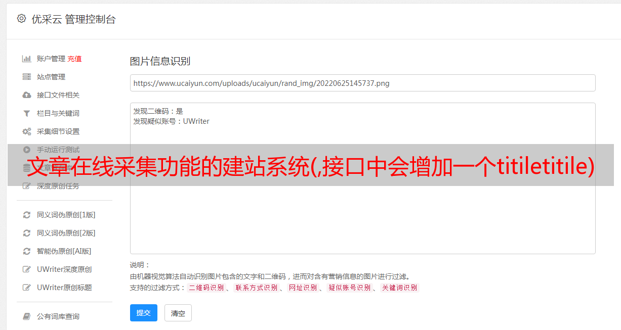 文章在线采集功能的建站系统(,接口中会增加一个titiletitile)