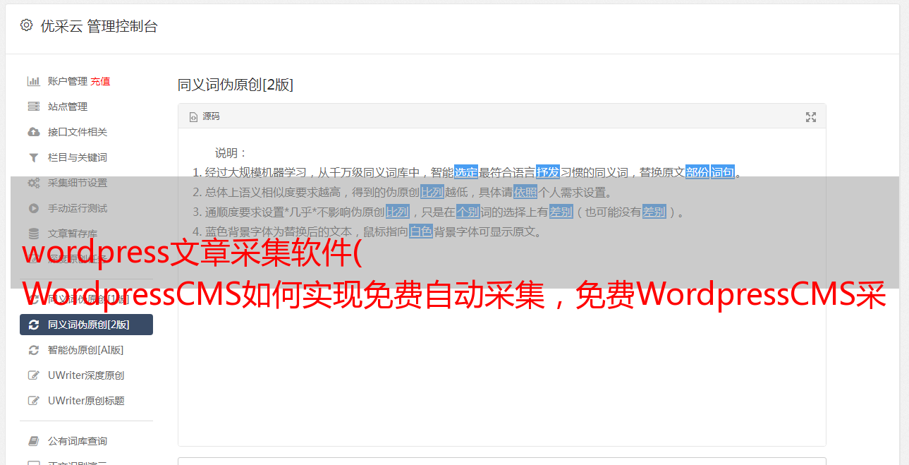 1.可以在文章发布时自动伪原创发布(伪原创主要针对搜索引擎,适合大流量采集类网站, 对于 伪原创 @收录很有帮助)