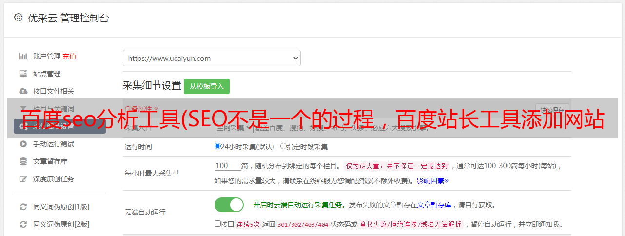 优采云 发布时间: 2022-02-05 18:05百度seo分析工具(SEO不是一个的过程,百度站长工具添加网站验证方法)