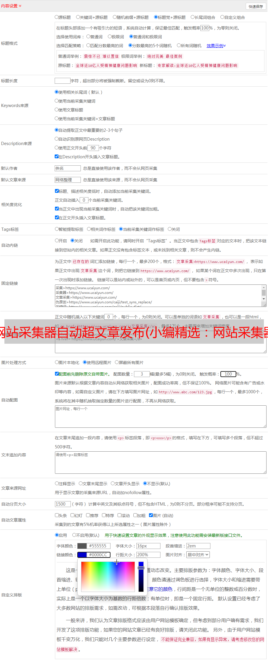 1.可以选择倒序、顺序、随机采集文章