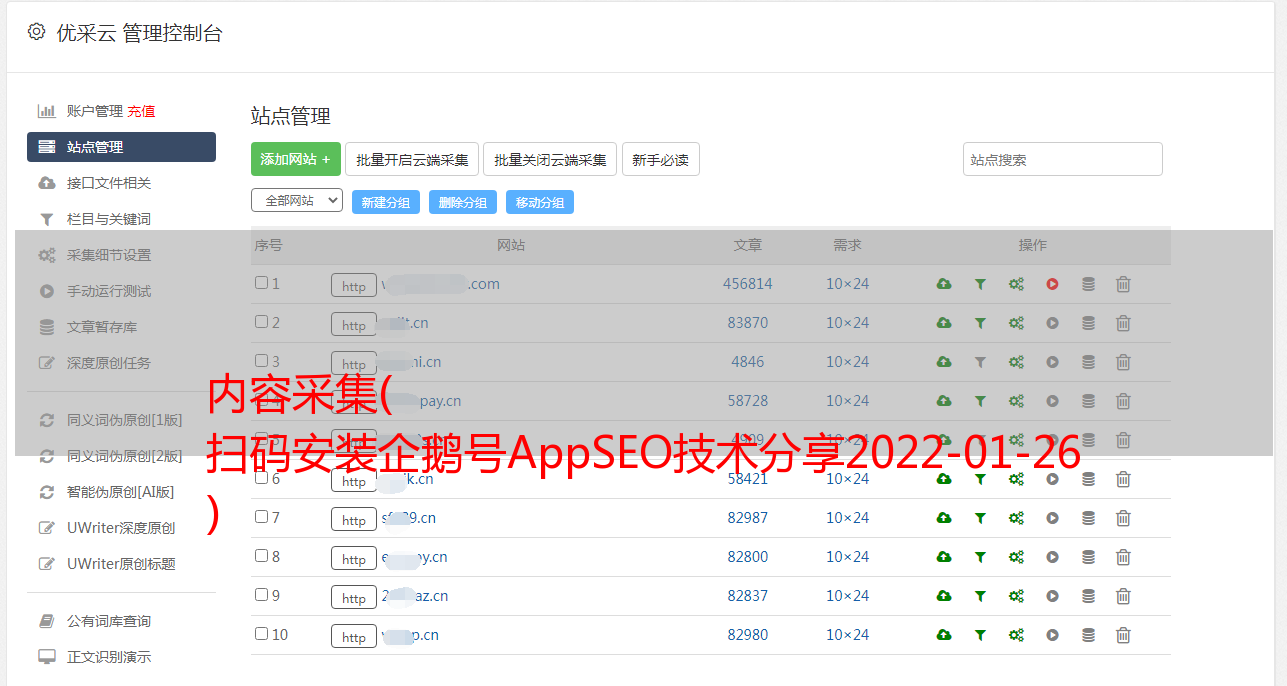 几十万个不同的cms网站可以统一管理。一个人维护数百个 网站文章 更新也不是问题。