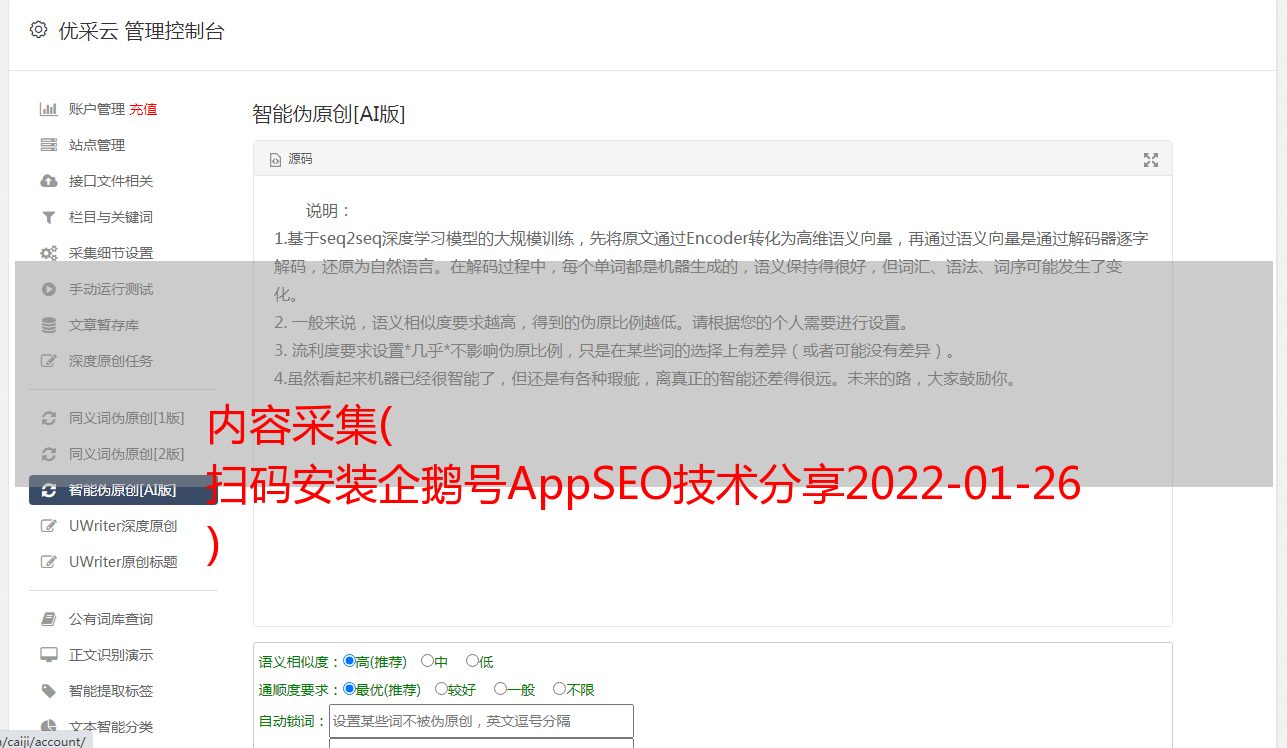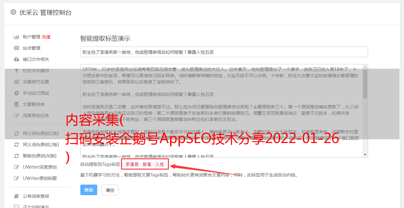 内容采集( 扫码安装企鹅号AppSEO技术分享2022-01-26 )
