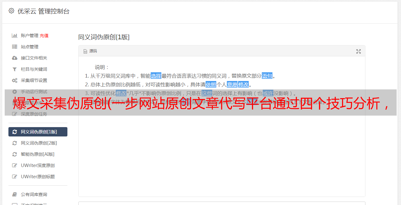爆文采集伪原创(一步网站原创文章代写平台通过四个技巧分析,深入解读)