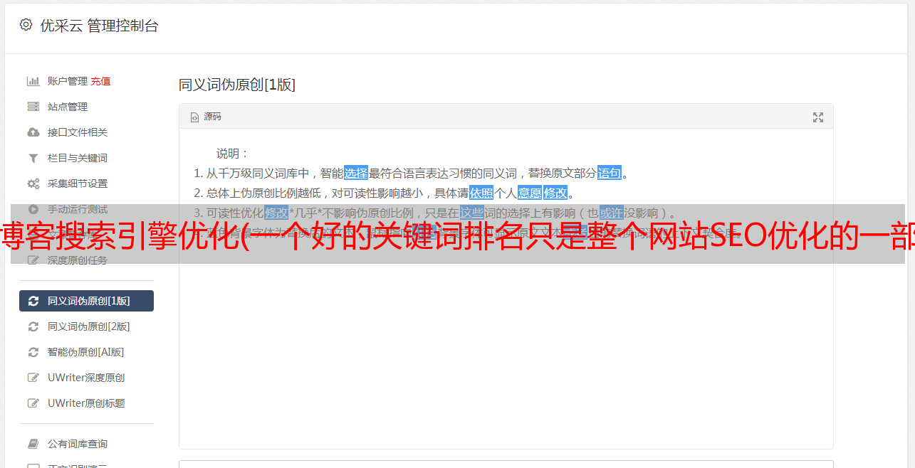 优采云 发布时间: 2022-02-06 01:27博客搜索引擎优化(一个好的关键词排名只是整个网站SEO优化的一部分。