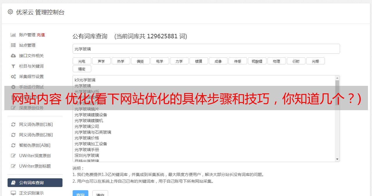 优采云 发布时间: 2022-02-06 02:01网站内容 优化(看下网站优化的具体步骤和技巧,你知道几个?)