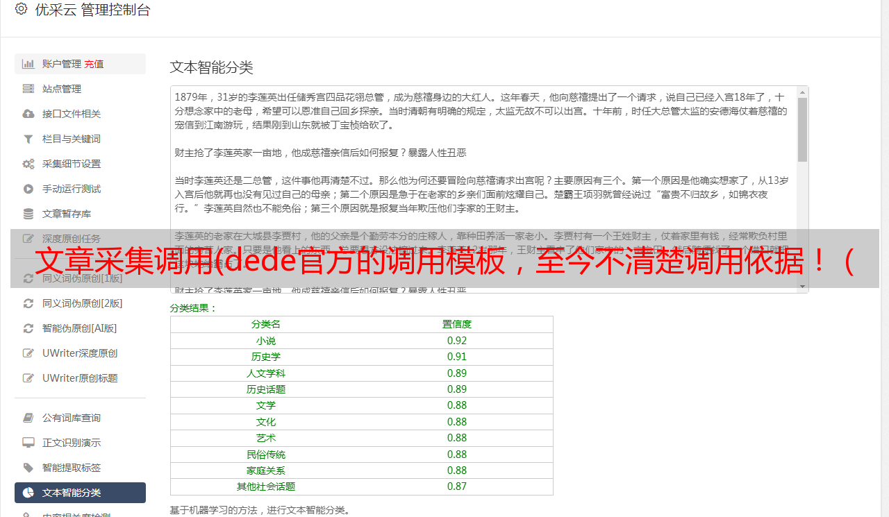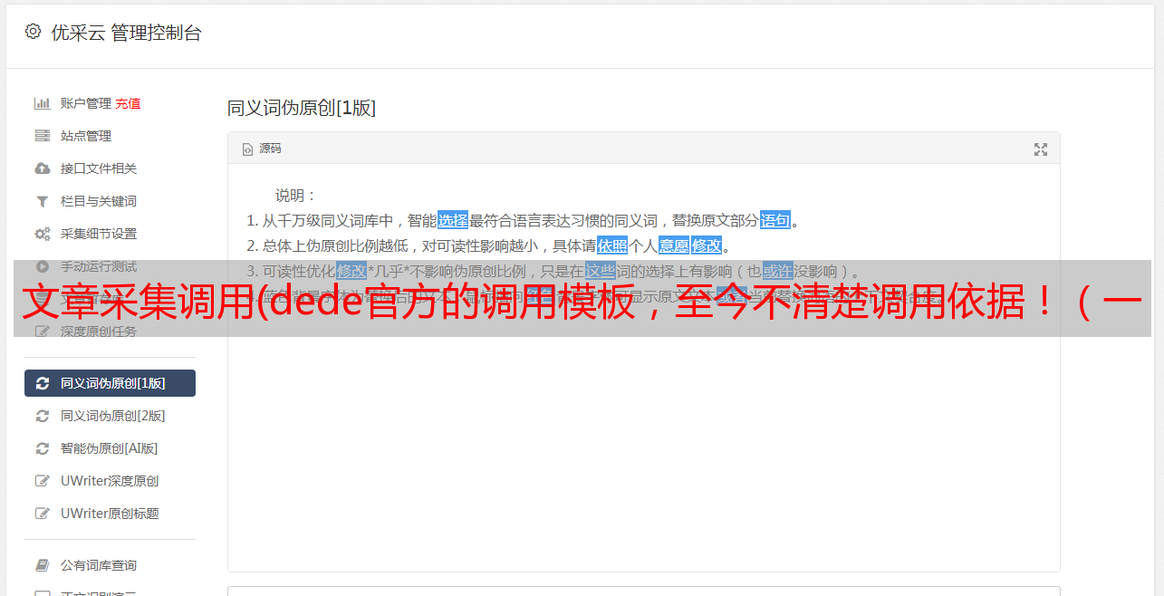 优采云 发布时间: 2022-02-06 04:10文章采集调用(dede官方的调用模板,至今不清楚调用依据!(一))