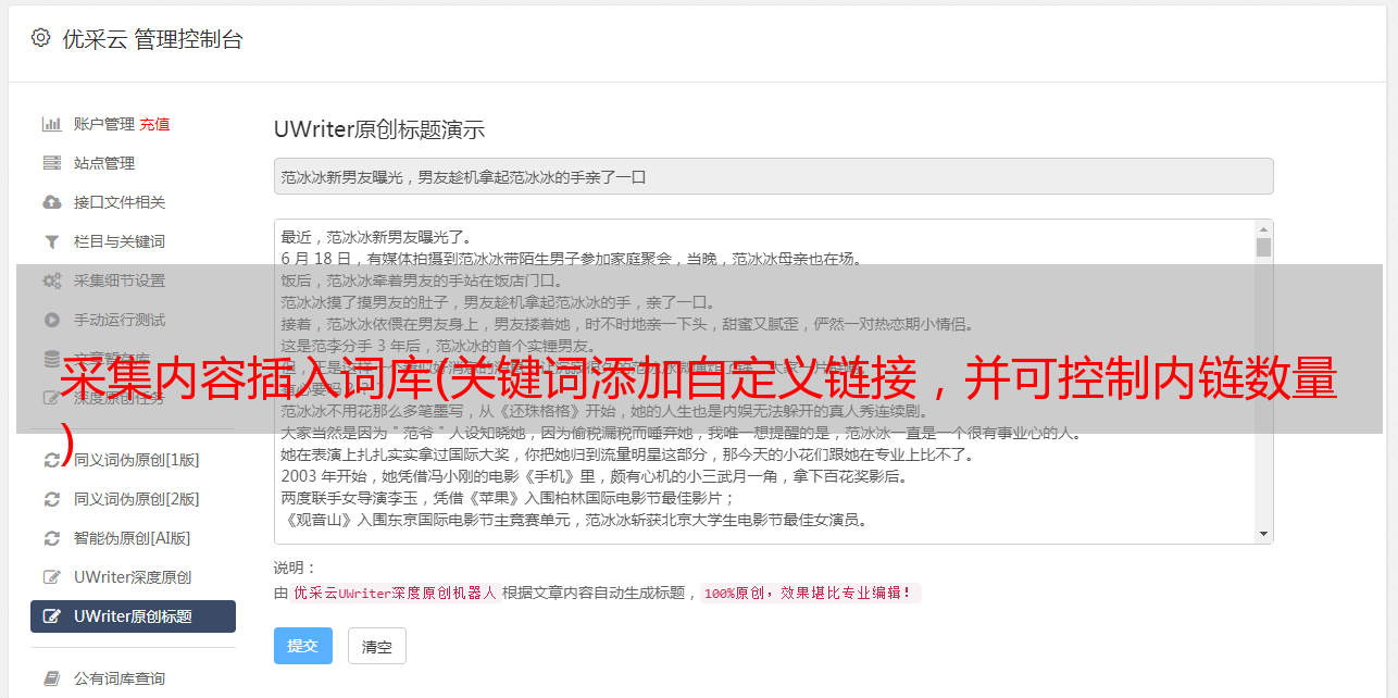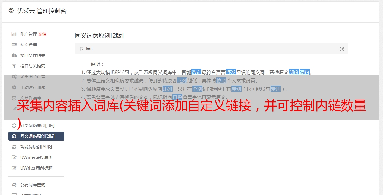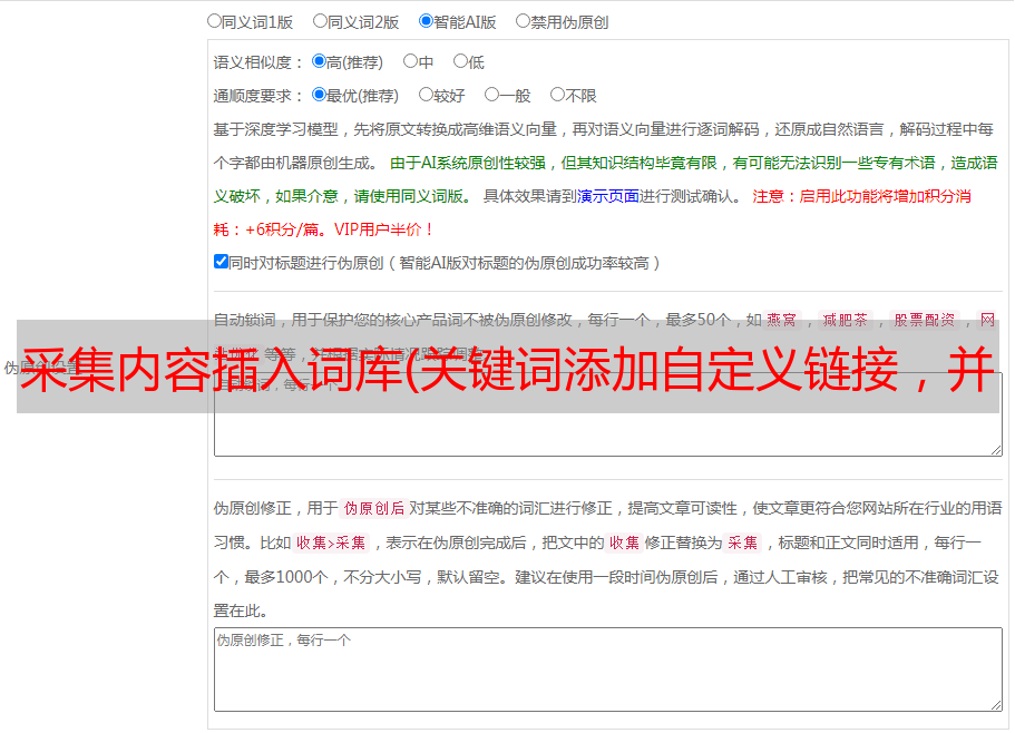 采集内容插入词库(关键词添加自定义链接,并可控制内链数量 )