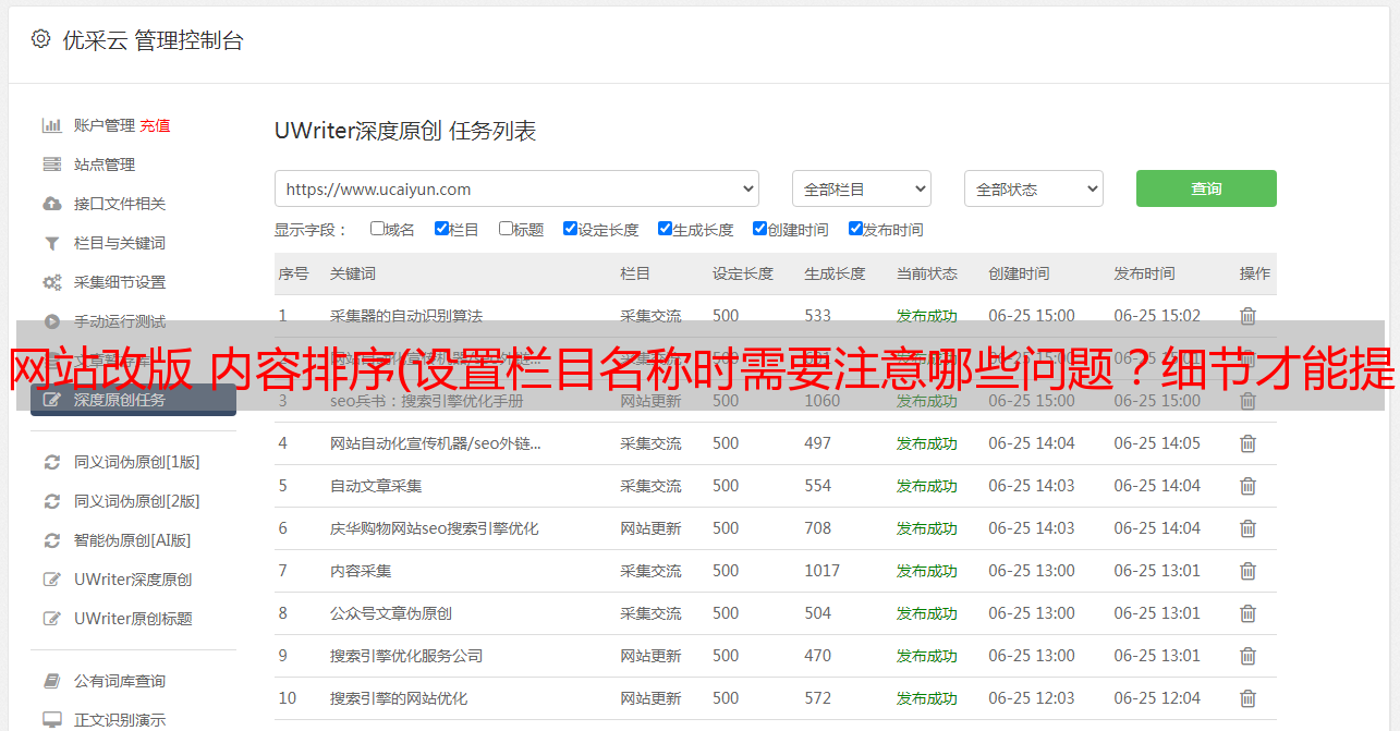 优采云 发布时间: 2022-02-06 10:02网站改版 内容排序(设置栏目名称时需要注意哪些问题?细节才能提升