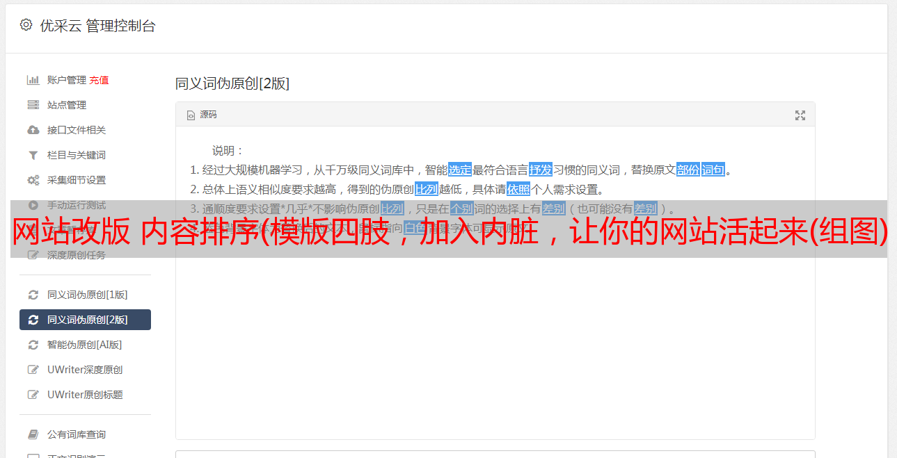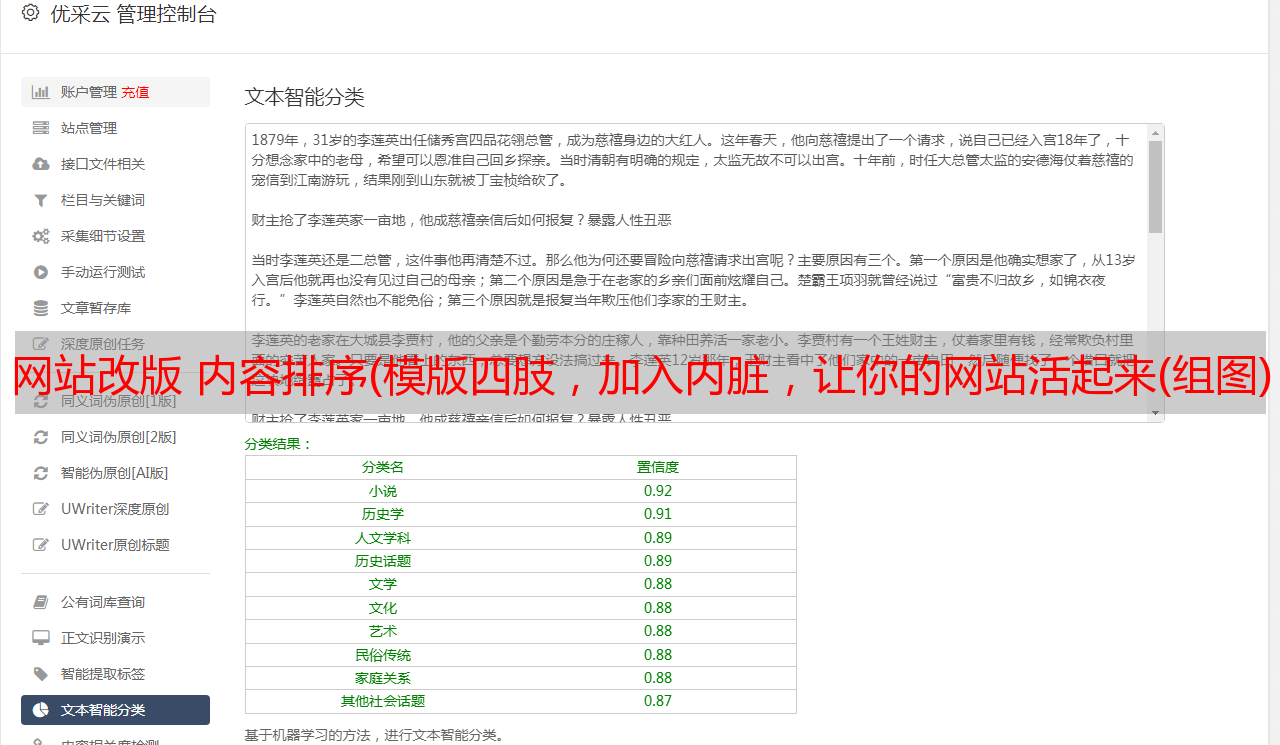 优采云 发布时间: 2022-02-06 10:03网站改版 内容排序(模版四肢,加入内脏,让你的网站活起来(组图)