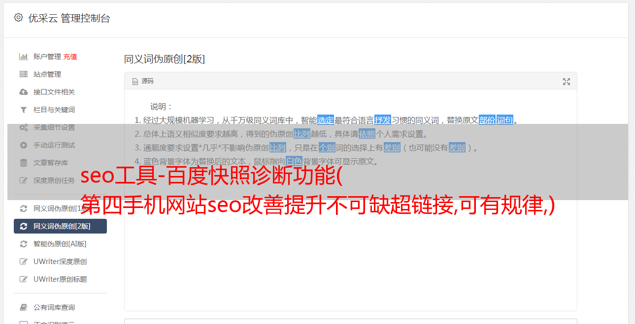 seo工具-百度快照诊断功能( 第四手机网站seo改善提升不可缺超链接,可有规律,)