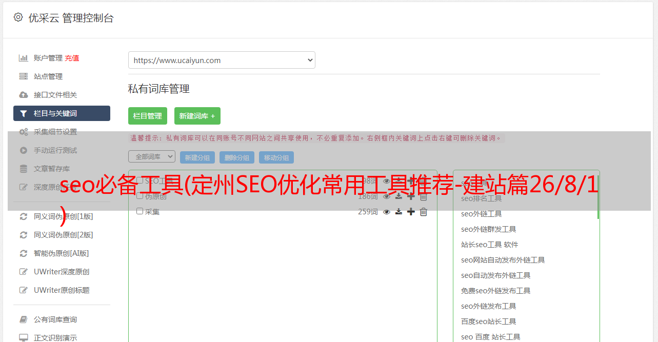 前言:常用SEO工具建站文章的内容来源于近期建站的操作经验。后面会推荐其他常用的SEO工具,并分享自己写的工具。欢迎关注。内容大纲:建站系统首页关键词挖掘和布局内容采集并发布内部链接