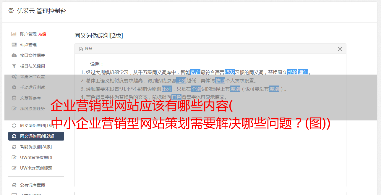 优采云 发布时间: 2022-02-06 15:11企业营销型网站应该有哪些内容(