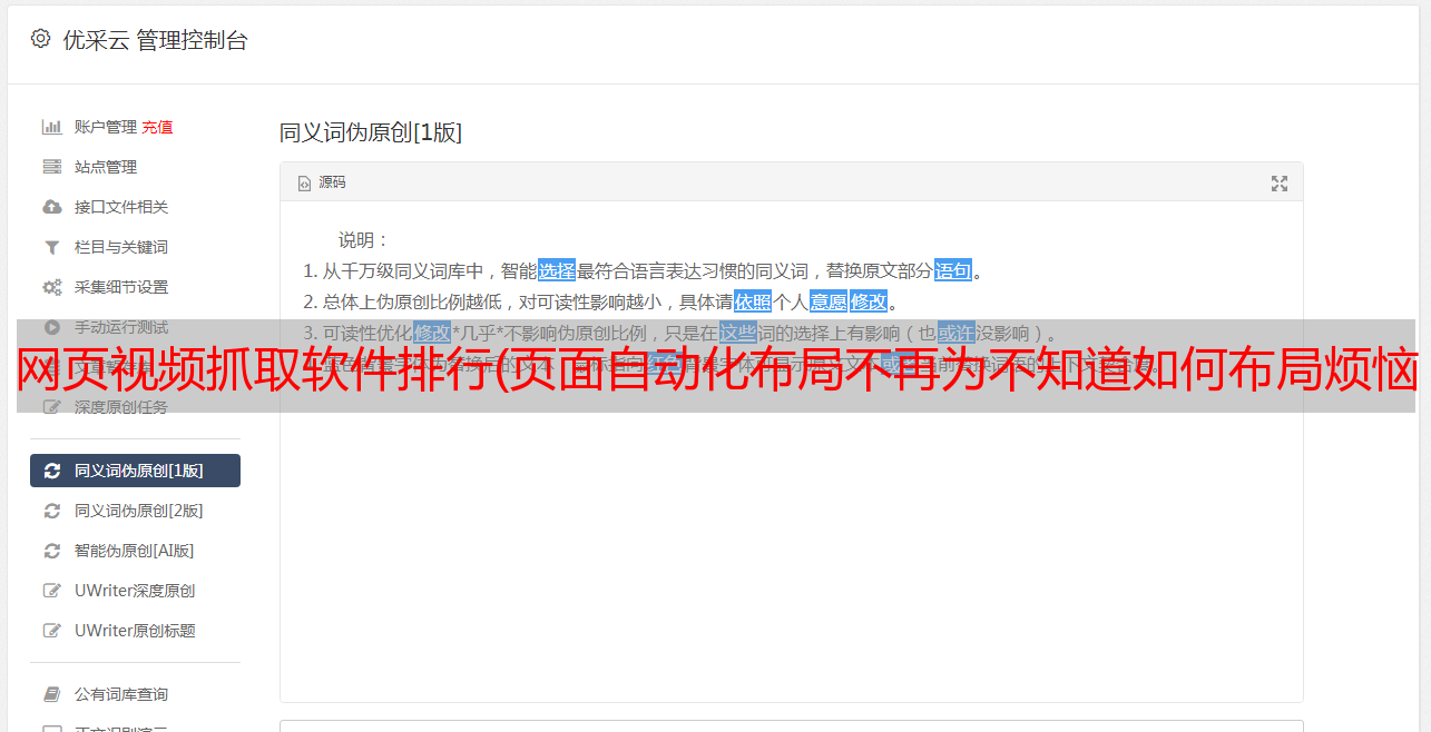 SEO优化工具排名信息可以生成相关内容,不再需要运营商专业操作。文章提供推荐的标题写作,不再让运营商除了首页不知道怎么写内容!页面的自动布局不再是如果你不知道怎么布局,后台有内置的检测工具。如果出现问题,密钥检测将使 网站 的健康等级显而易见。更改更有针对性和优化。显示风格 手机平板组合,不再为不知布局而烦恼。工具有问题的地方,一键检测会让你知道网站健康等级明显,变化更有针对性,显示风格优化,手机平板和网站风格同步。