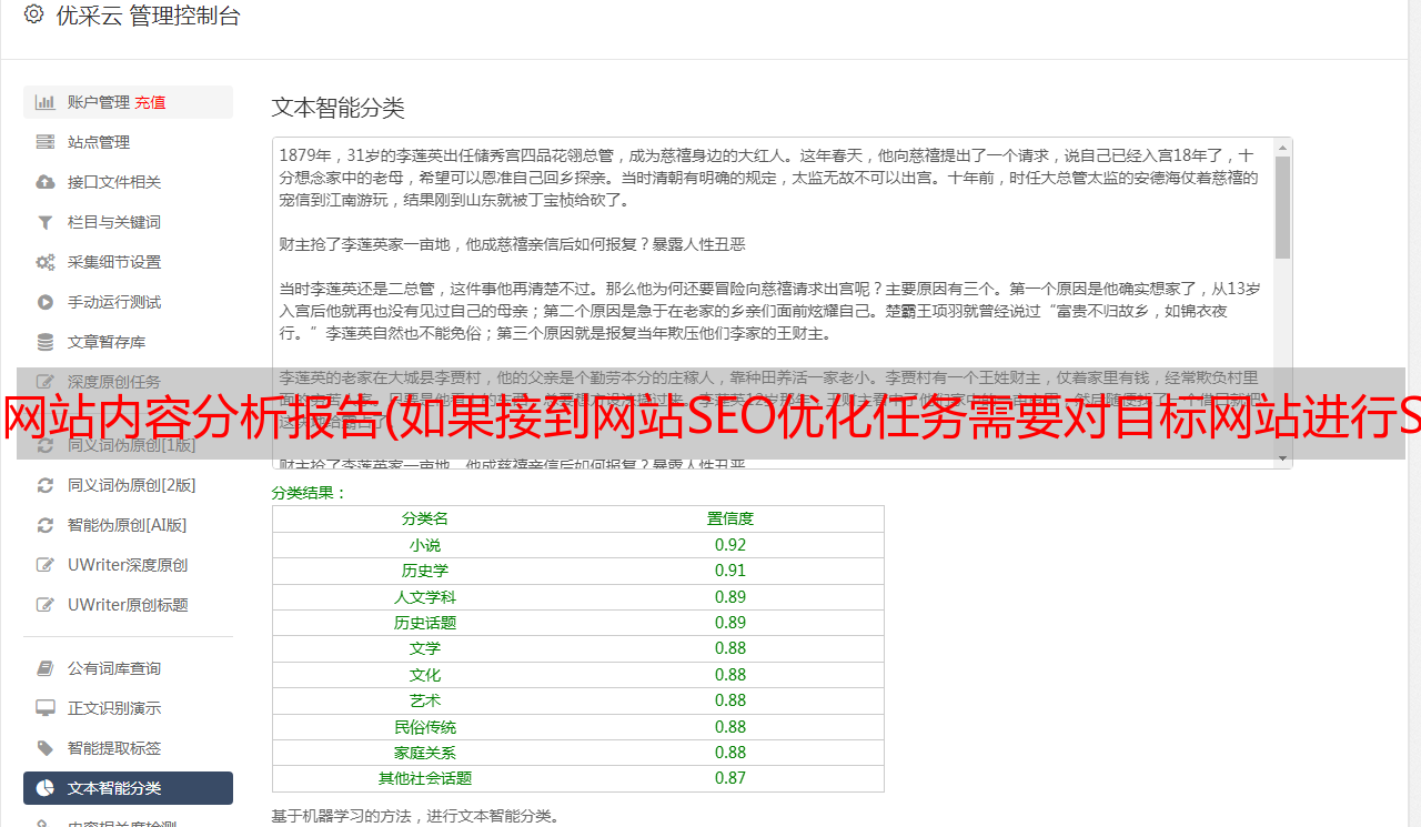 优采云 发布时间: 2022-02-06 18:02网站内容分析报告(如果接到网站SEO优化任务需要对目标网站进行SEO诊断