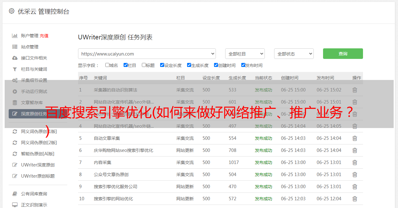 优采云 发布时间: 2022-02-06 22:11百度搜索引擎优化(如何来做好网络推广、推广业务?