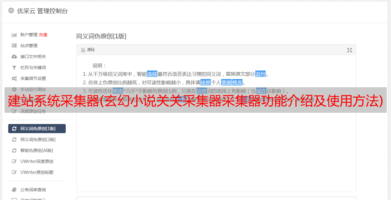 建站系统采集器(玄幻小说关关采集器采集器功能介绍及使用方法)