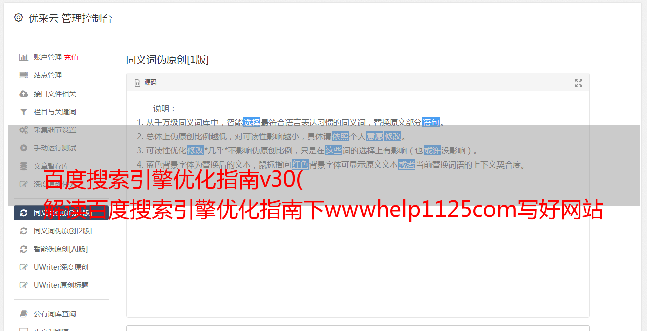 优采云 发布时间: 2022-02-07 04:20百度搜索引擎优化指南v30(
