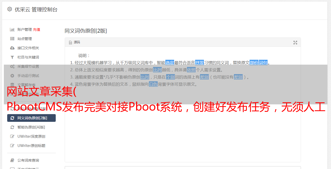 Pbootcms 发布了与 Pboot 系统的完美连接。只要你的网站是用Pbootcms构建的,网站就可以实现一键文章,无需修改任何代码采集伪原创发布,创建发布任务无需人工干预,每天智能发布文章,大大增加网站百度收录的音量,网站优化更厉害。