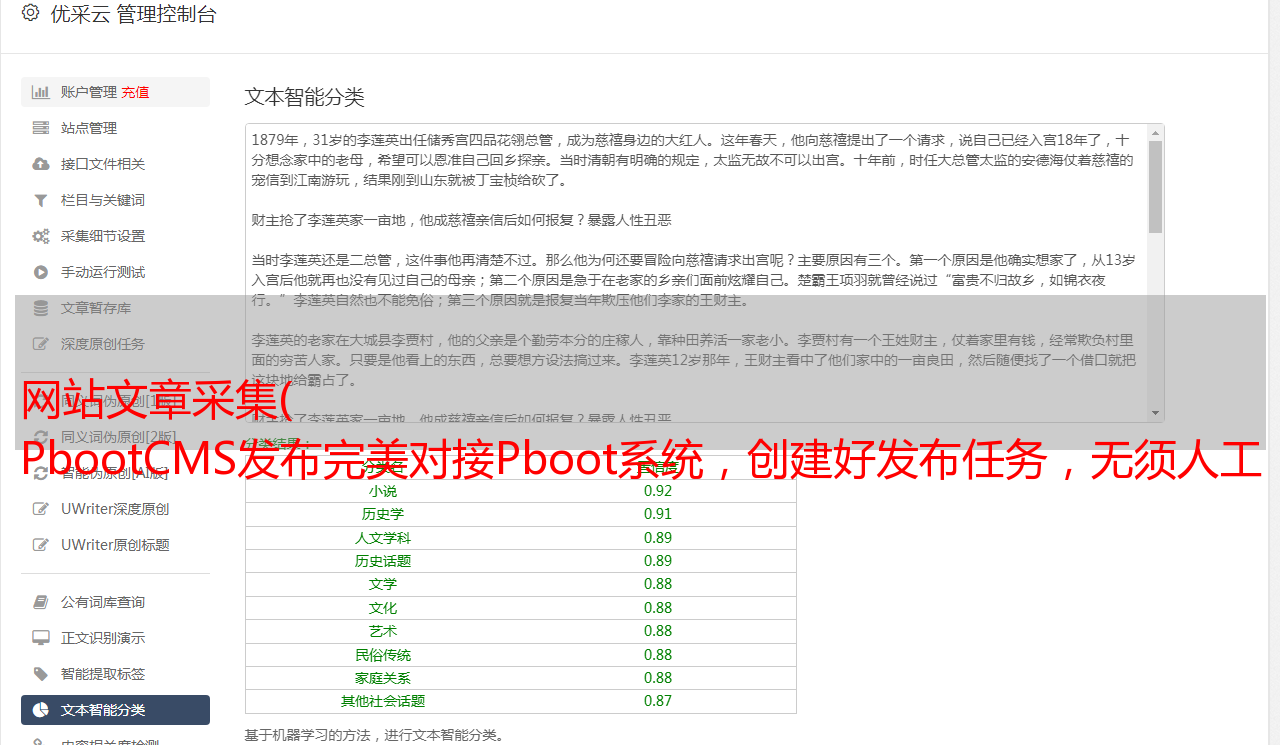 网站文章采集( PbootCMS发布完美对接Pboot系统,创建好发布任务,无须人工干涉 )