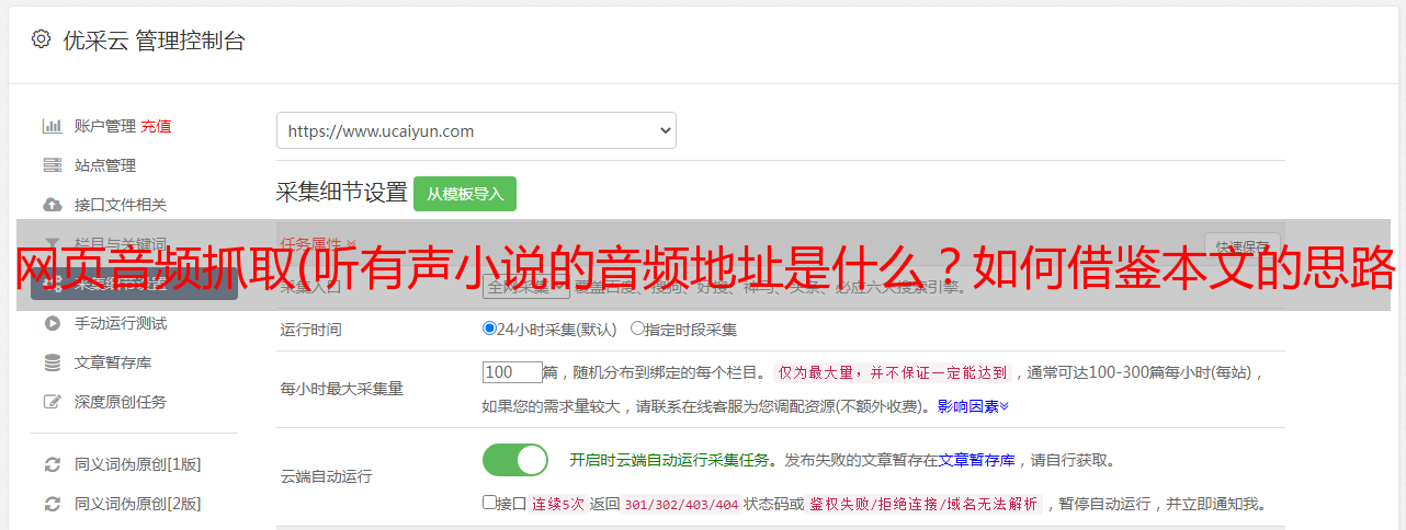 优采云 发布时间: 2022-02-07 08:02网页音频抓取(听有声小说的音频地址是什么?如何借鉴本文的思路
