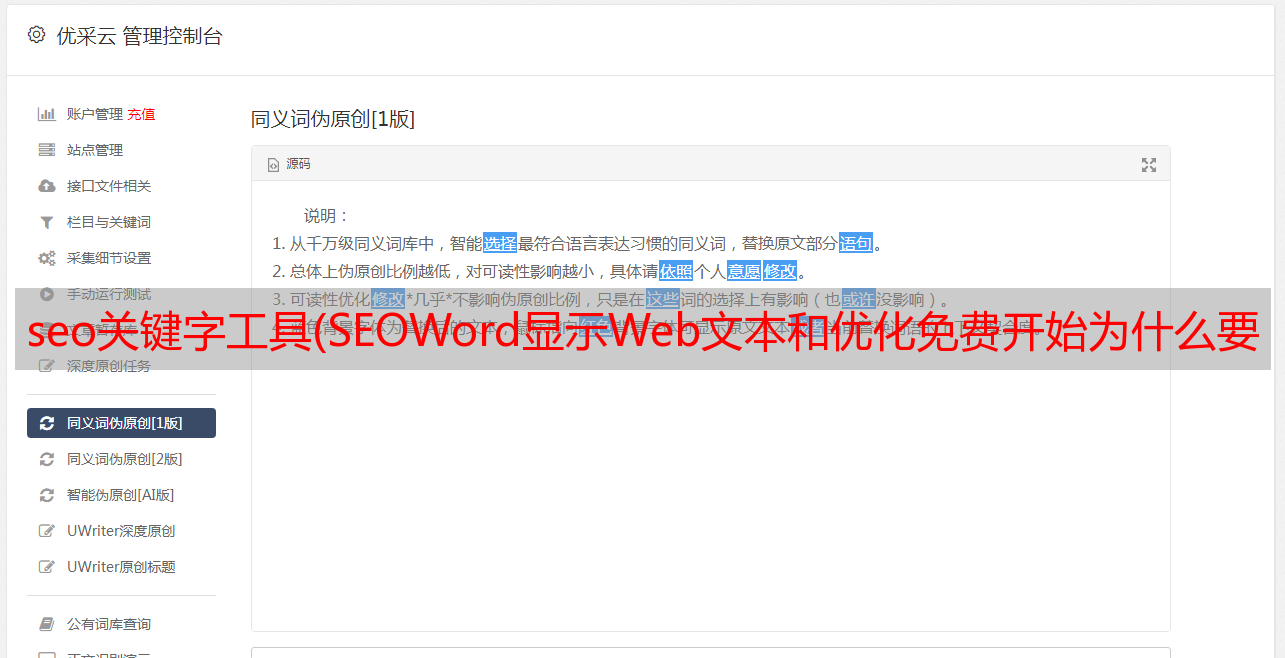 优采云 发布时间: 2022-02-07 08:15seo关键字工具(SEOWord显示Web文本和优化免费开始为什么要使用SEO工具)