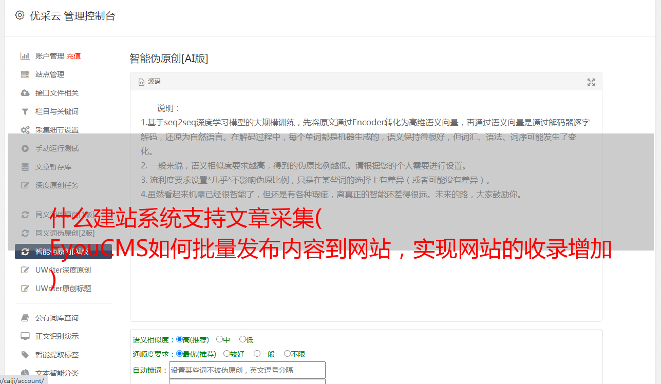什么建站系统支持文章采集( EyouCMS如何批量发布内容到网站,实现网站的收录增加 )