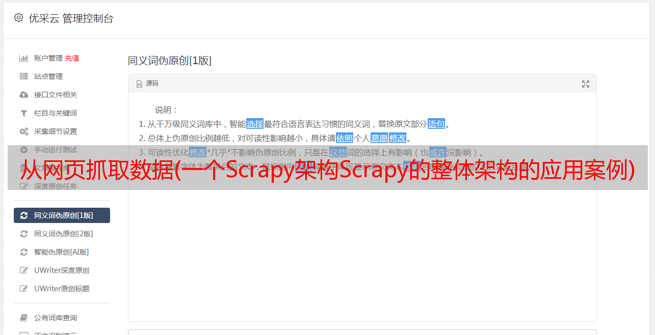优采云 发布时间: 2022-02-07 11:00从网页抓取数据(一个Scrapy架构Scrapy的整体架构的应用案例)