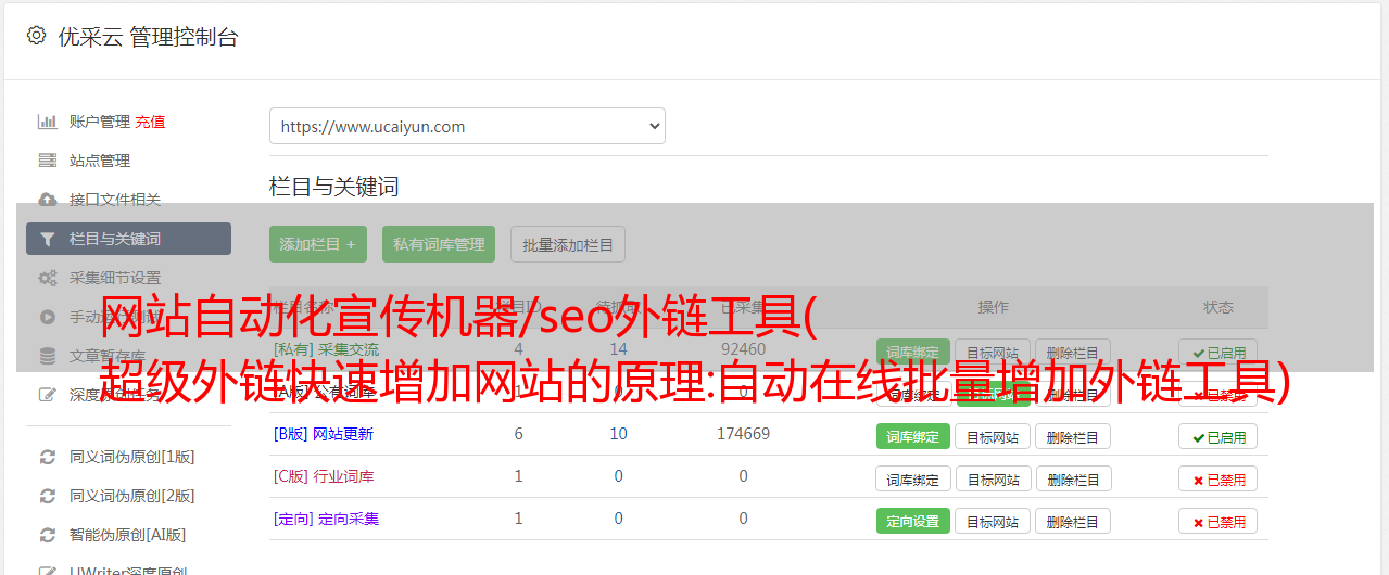 优采云 发布时间: 2022-02-07 11:01网站自动化宣传机器/seo外链工具(