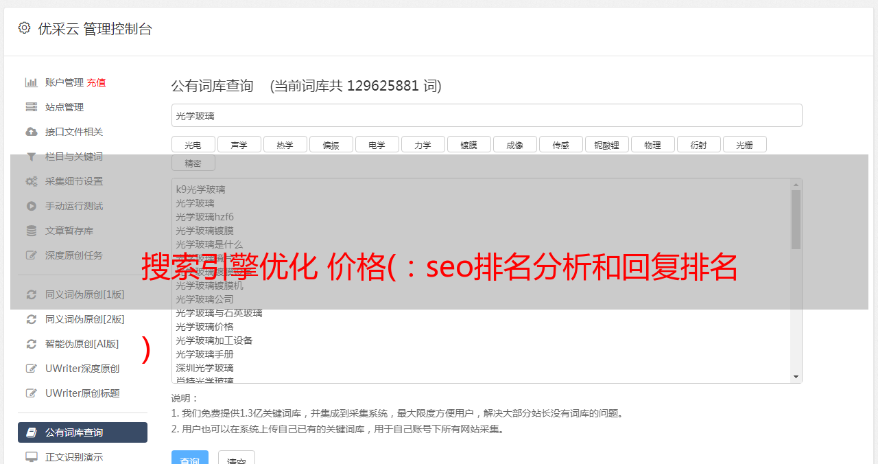 优采云 发布时间: 2022-02-07 11:10搜索引擎优化 价格(:seo排名分析和回复排名