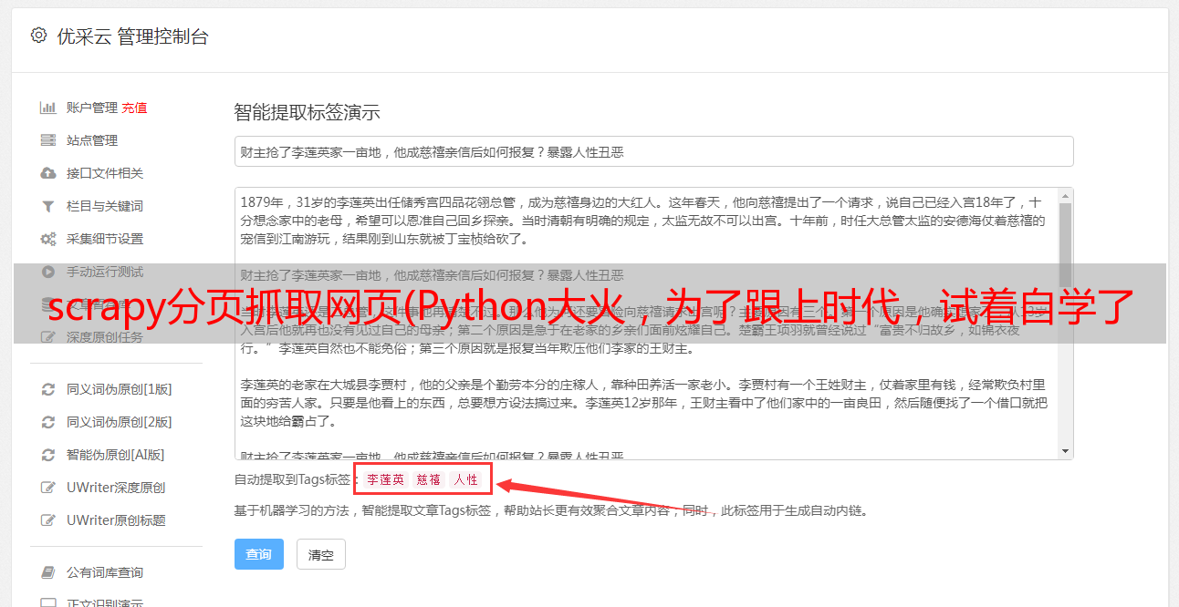 优采云 发布时间: 2022-02-07 12:20scrapy分页抓取网页(Python大火,为了跟上时代,试着自学了下某位作者)