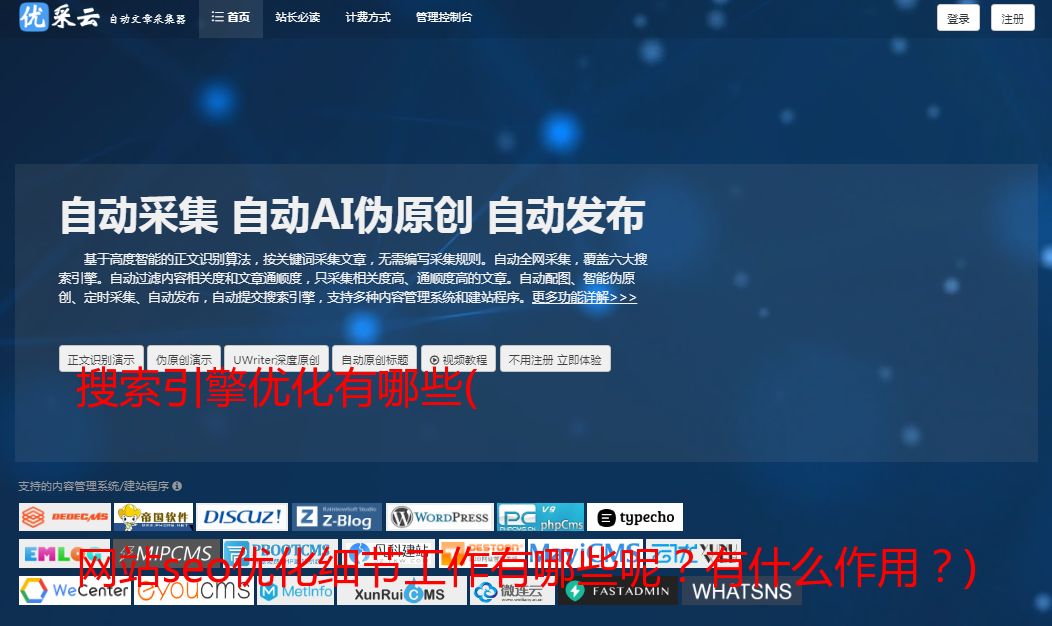 搜索引擎优化有哪些( 网站seo优化细节工作有哪些呢?有什么作用?)