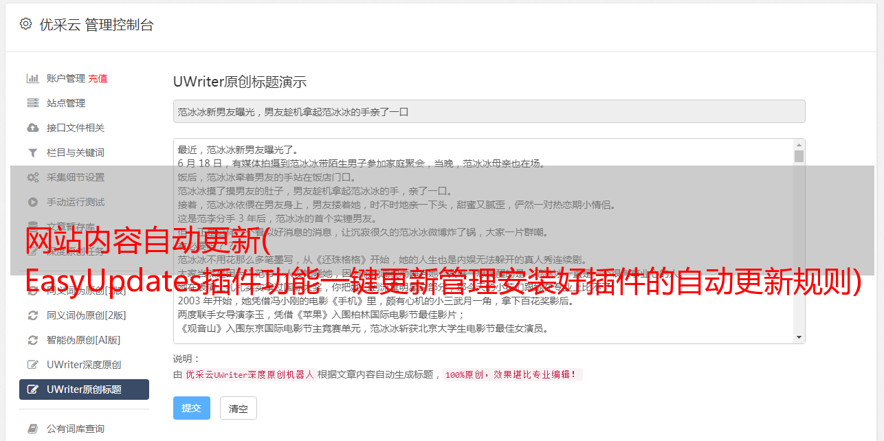 优采云 发布时间: 2022-02-07 17:00网站内容自动更新(
