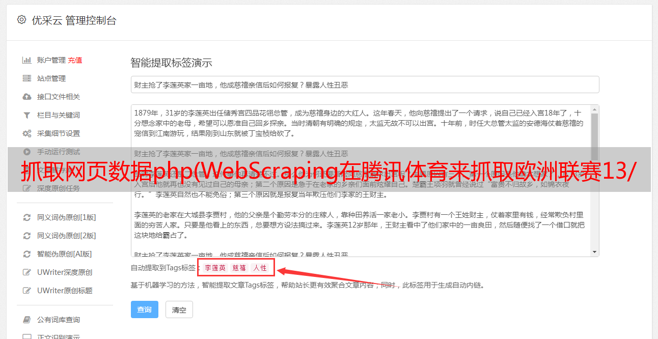 抓取网页数据php(WebScraping在腾讯体育来抓取欧洲联赛13/14赛季的数据)