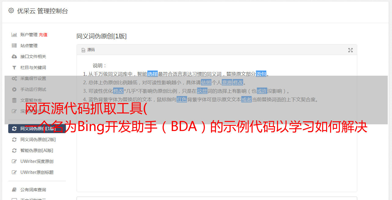 网页源代码抓取工具( 一个名为Bing开发助手(BDA)的示例代码以学习如何解决与编程相关的问题)