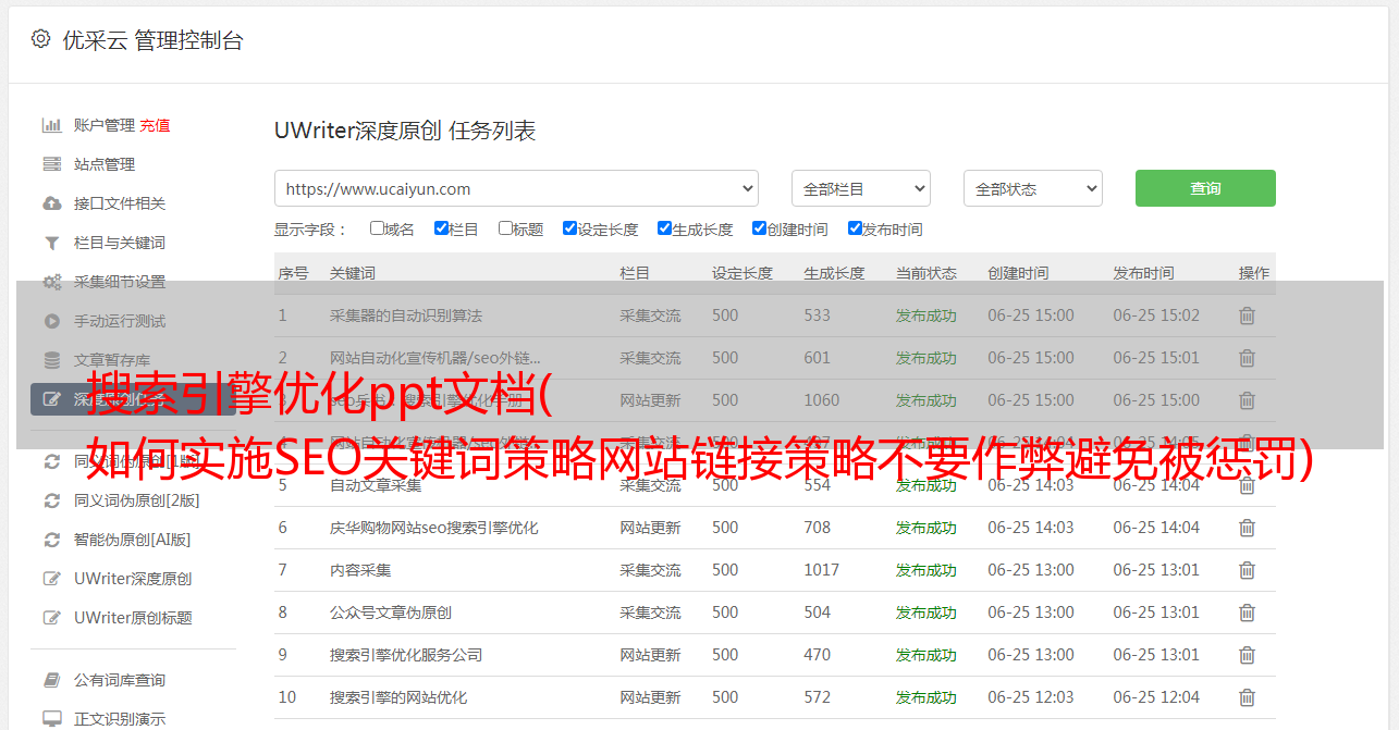 部分垃圾链接与论坛、留言簿等中的网址批量发送网站优化策略网站搭建优化并使用高性能稳定的服务器避免和垃圾邮件网站上同一服务器或一个IP字段域名和URL的设计应考虑到关键词的推广与网站的英文或中文拼音推广有关。>内容搜索引擎会优先推荐原创网站网页优化尽量使用DIV-CSS,让网页代码简洁,让页面打开快,方便蜘蛛程序抓取. 如果页面有JAVA脚本,可以考虑将脚本放在页面末尾或者调用js文件,关键词可以尽量集中在页面代码的最前面。尽量使用静态 URL,避免收录重要列的动态 URL。避免使用不同的链接到 网站 页面搜索引擎。一般情况下,不同的链接地址分别评估PR。动态地址尽量不要只用一个参数。参数越多,搜索引擎抓取的难度就越大。增加ALT属性识别图片主题重要图片防止图片主题与首页或关键栏目页面主题一致 httpmskinqqcomfromqqPR0httpmskinqqcomPR5 以上两个地址是一页但PR不同。不要作弊,避免受到惩罚。SEO必须了解规则以避免无意使用这些技术并受到搜索引擎的惩罚