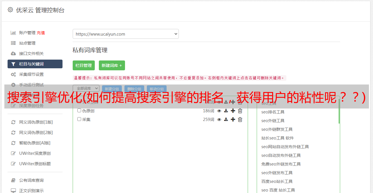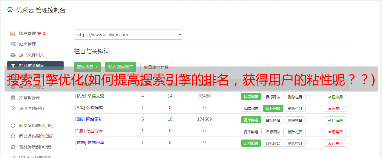 优采云 发布时间: 2022-02-08 08:04搜索引擎优化(如何提高搜索引擎的排名,获得用户的粘性呢??)