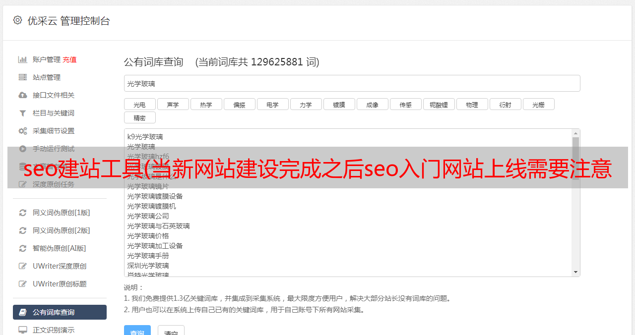 优采云 发布时间: 2022-02-08 08:23seo建站工具(当新网站建设完成之后seo入门网站上线需要注意的事项)