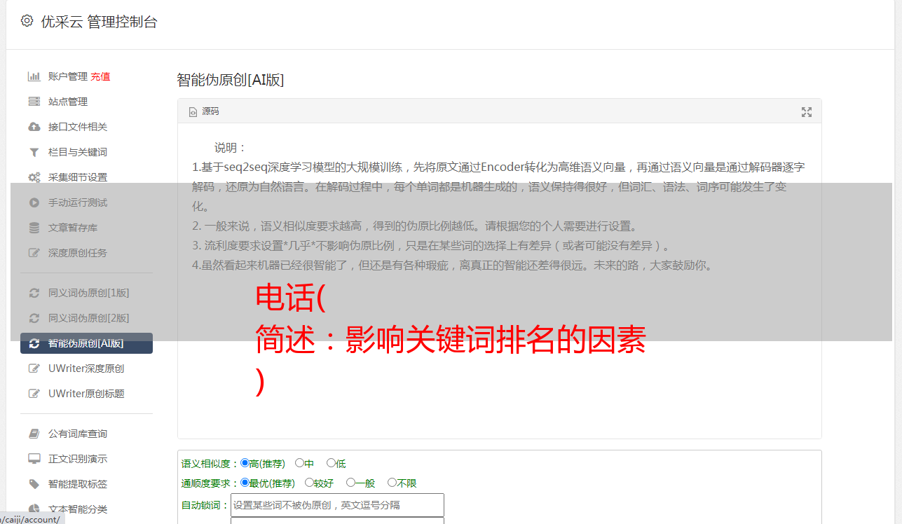 在选择和设置了一系列关键词之后,密度设置很重要,建议不要超过10%。每个文章都要有针对性,比如一篇文章文章针对一两个关键词,一个主关键词和一个长尾关键词等,做到文章简洁明了突出重点,把握度这个很重要。