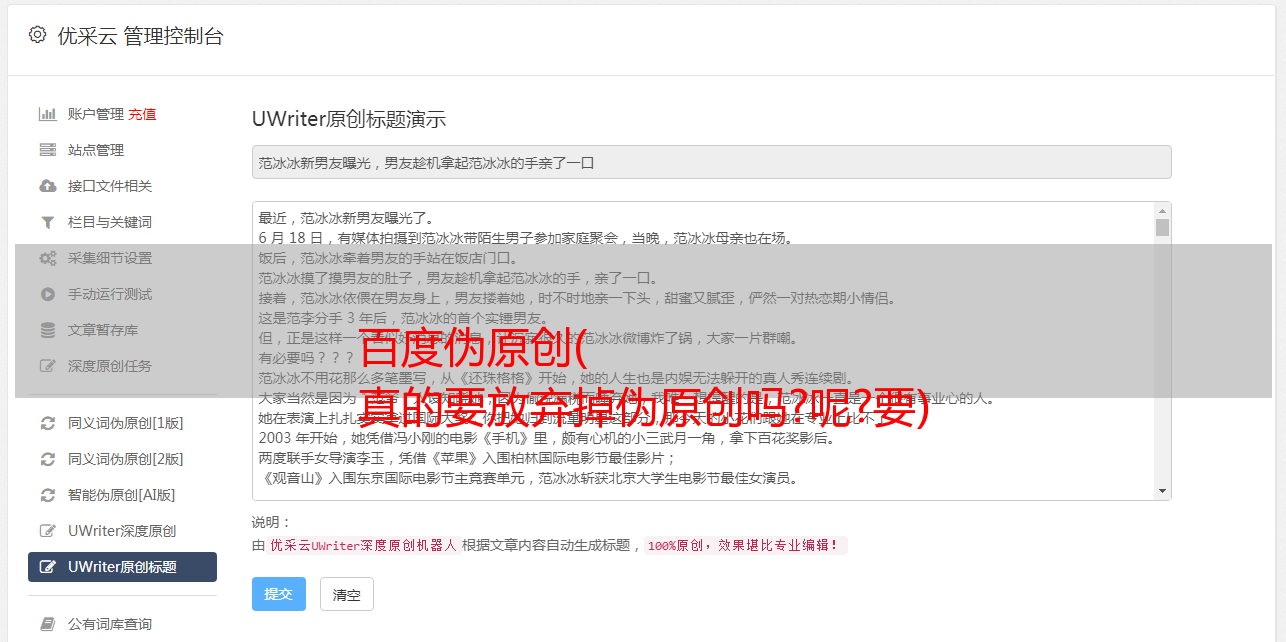优采云 发布时间: 2022-02-08 15:22百度伪原创(