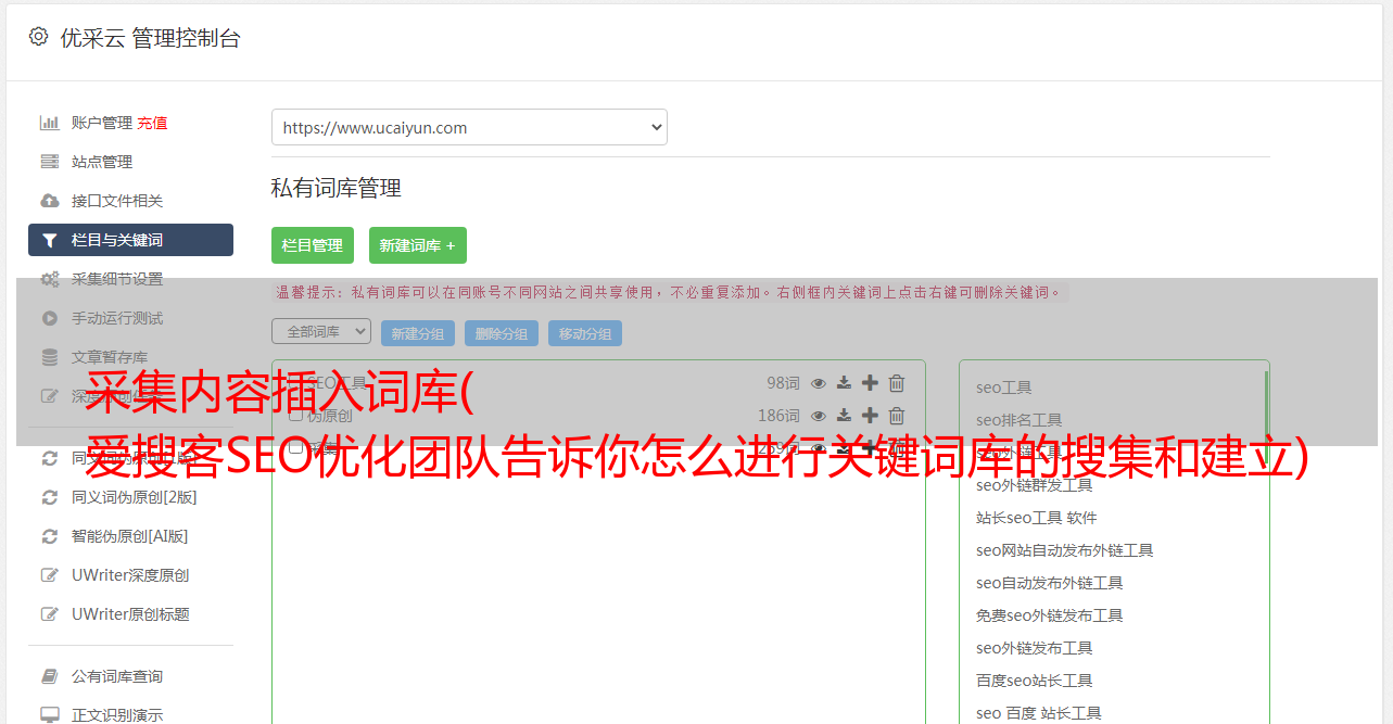 采集内容插入词库( 爱搜客SEO优化团队告诉你怎么进行关键词库的搜集和建立)