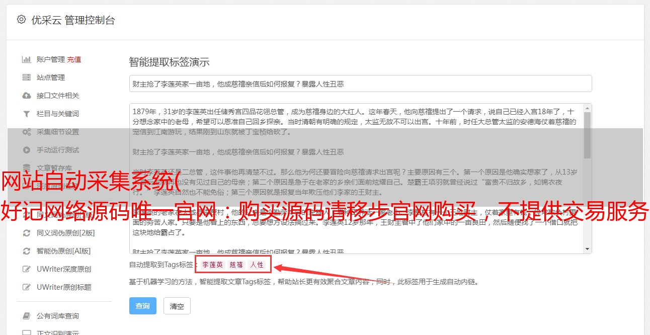 网站自动采集系统( 好记网络源码唯一官网:购买源码请移步官网购买,不提供交易服务 )