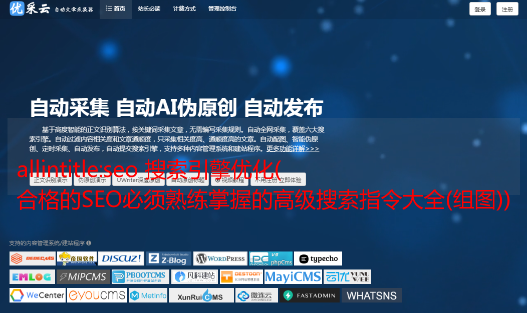 优采云 发布时间: 2022-02-08 21:20allintitle:seo 搜索引擎优化(