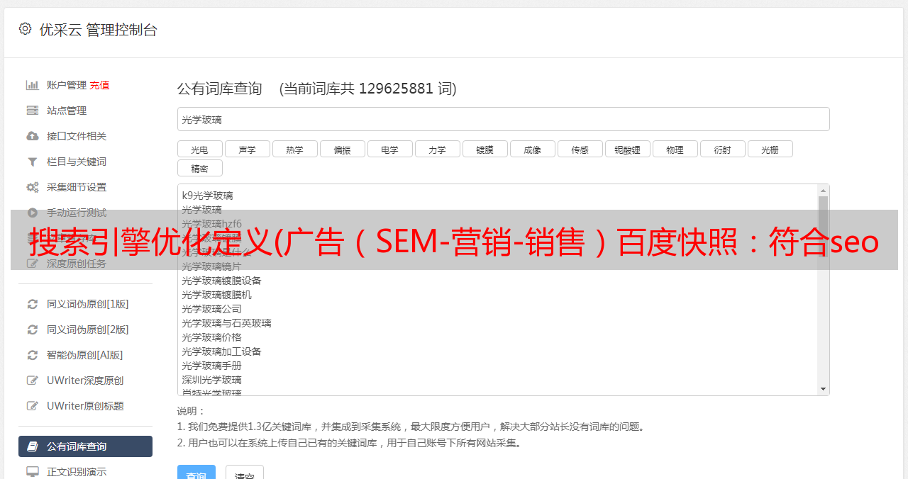 优采云 发布时间: 2022-02-08 22:00搜索引擎优化定义(广告(SEM-营销-销售)百度快照:符合seo搜索规则)