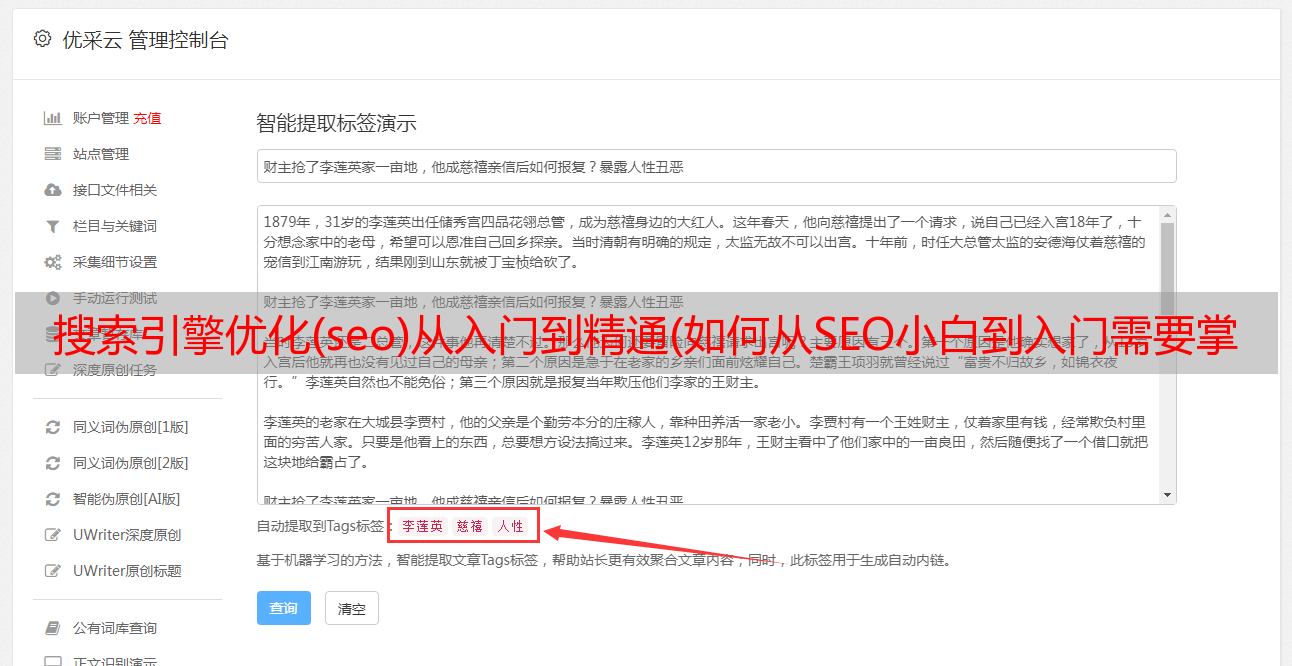 2、 确保 关键词 是标签。查找内容的关键词,通常从标题中找到。分类关键词、优采云智迅睿采集