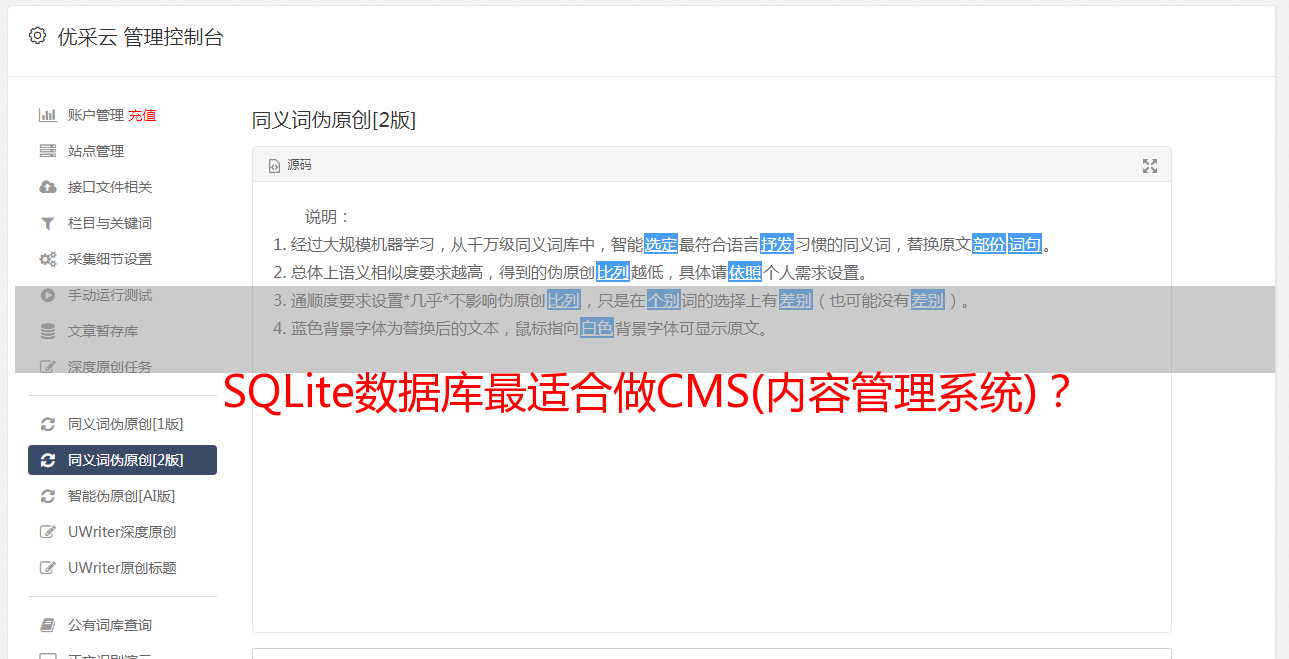 任何配置都可以支持SQLite·3、无需单独购买数据库服务,无需服务器进程,配置成本为零·4、整个数据库存储在单个文件中,数据导入,导出,备份和恢复都可以所有复制的文件,维护难度为零。 5、读取速度快,在数据量不是很大的情况下更快,更重要的是:它无需复杂的授权验证即可保存到数据库的远程连接,并且可以通过打开SQLite进行操作。在中小型网站 cms应用方案中避免了缺点:·1、并行低动态访问当访问量不超过100,000 PV时,SQLite足以超过Access的并发性;生成静态页面后没有必要考虑数据库并发问题·2、在大数据量的情况下性能较差,但中小型站点的数据量通常不超过100,000,因此SQlite在100万个数据量下,它的性能很好,因为它可以保存正确的数据。与数据库服务器的远程连接将更快。 3、写入速度慢默认情况下,SQlite的写入速度比MySQL慢得多,但是cms应用程序场景的写入操作较少。插入新的文章时,我几乎感觉不到缓慢。集中式数据库写入操作将仅在安装过程中发生,但只有一次,可以忽略。 4、向现有表添加索引的速度很慢,但是在中小型站点中没有这样的要求cms,可以忽略·5、 MySQL不能部署在与前端计算机不同的服务器上,但不需要单独部署中小型站点。总结:在中小型站点的应用场景中,SQLite可以最小化构建站点的成本cms。它减少了维护的难度并避免了自身的缺点。因此,我认为支持SQLite的cms系统将在将来变得流行。 --EOF--Fenng注意:这是一位网友的手稿,请注明本文作者以供转载。发布本文并不意味着我同意本文中的所有观点。实际上,我认为Berkeley DB也可能很好。此外,如果cms的每日访问量少于100,000,则通过某些Web前端优化,后端的压力将非常小。上海网站建设: