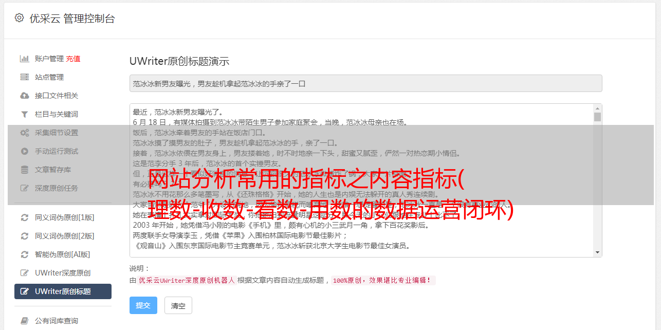优采云 发布时间: 2022-02-09 04:23网站分析常用的指标之内容指标(