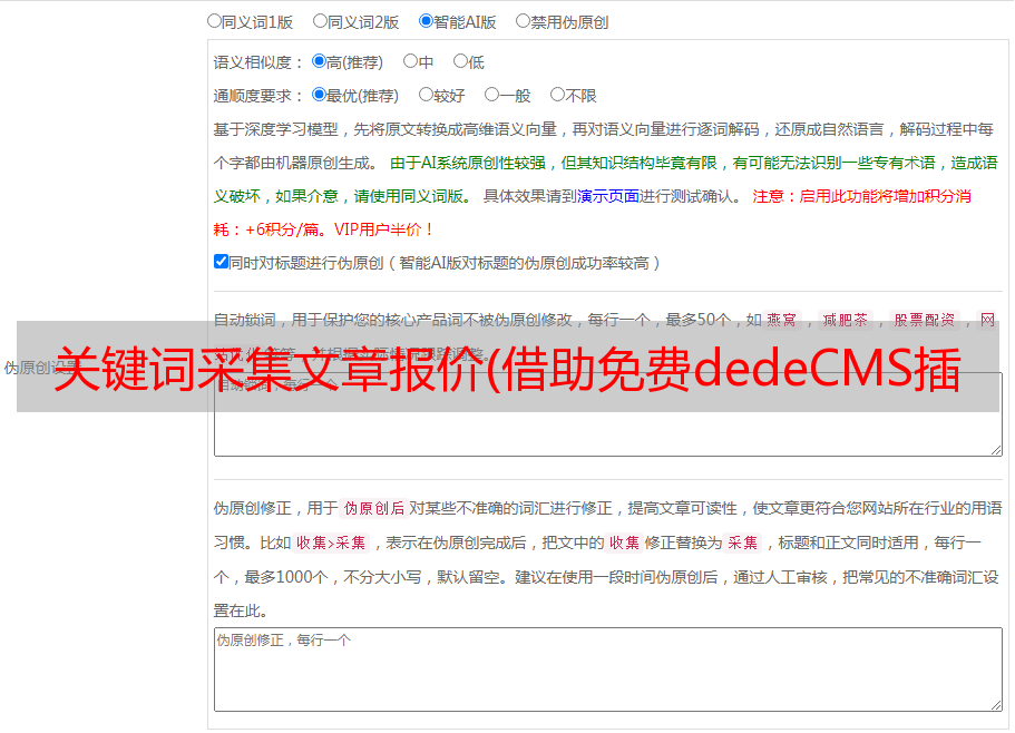 关键词采集文章报价(借助免费dedeCMS插件快速提升网站收录以及关键词排名的方法 )