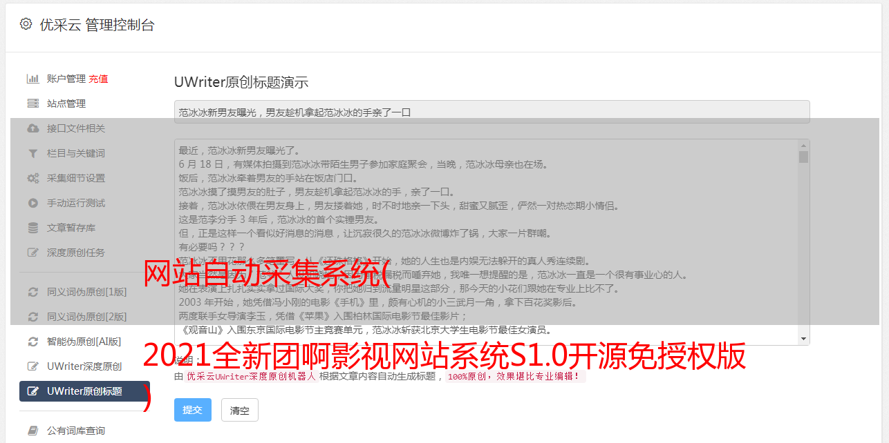 网站自动采集系统( 2021全新团啊影视网站系统S1.0开源免授权版 )
