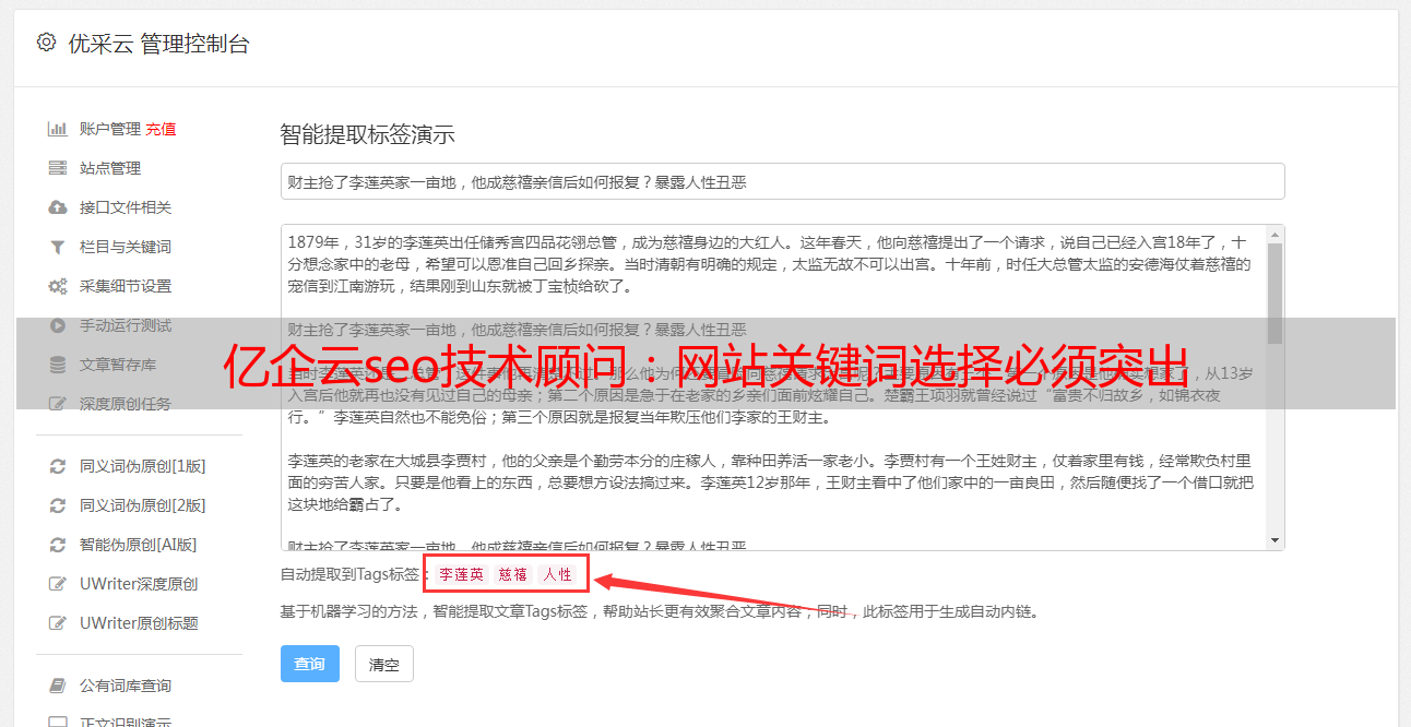 优采云 发布时间: 2021-05-01 20:40亿企云seo技术顾问:网站关键词选择必须突出