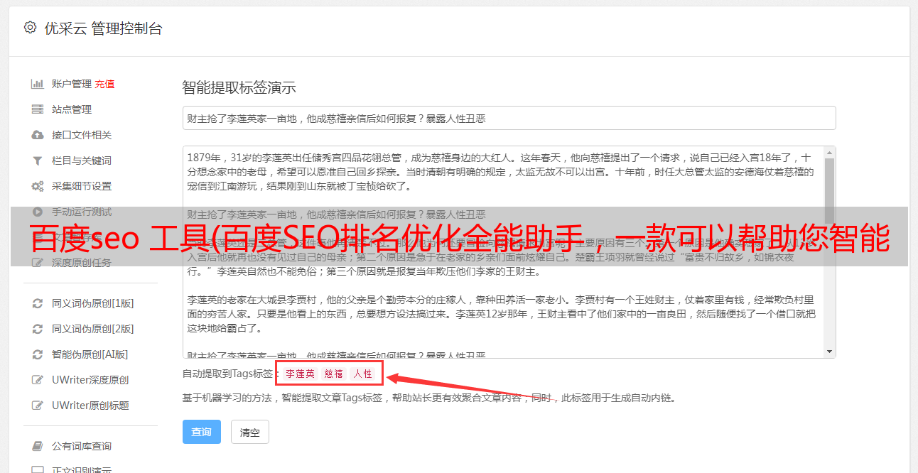 优采云 发布时间: 2022-02-09 13:08百度seo 工具(百度SEO排名优化全能助手,一款可以帮助您智能提交外链)